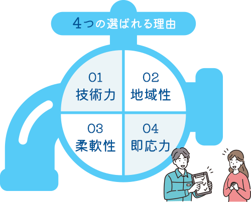 水回りは見えない部分ほど重要で、小さな修理でも誤魔化さず、長く安心して使える状態に整えることが肝要です。また中間マージンがかからず、必要な作業だけを適正な価格でご提案できます。